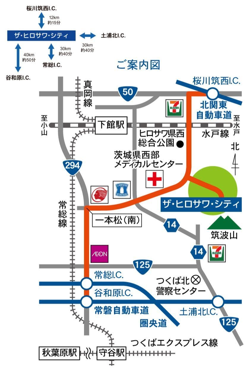●北関東自動車道・桜川筑西ICから国道50号で約15分